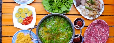 Mỗi phần lẩu đều được phục vụ cùng rau xanh, bún tươi, nước chấm đặc trưng - tất cả hòa quyện tạo nên một bữa ăn ngon miệng và tròn vị.